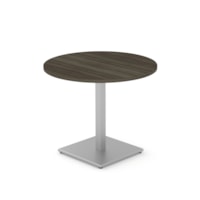 HDL Innovations 35-1/2" Round Table with Square Metal Base, Grey Dusk/Silver | Grand & Toy