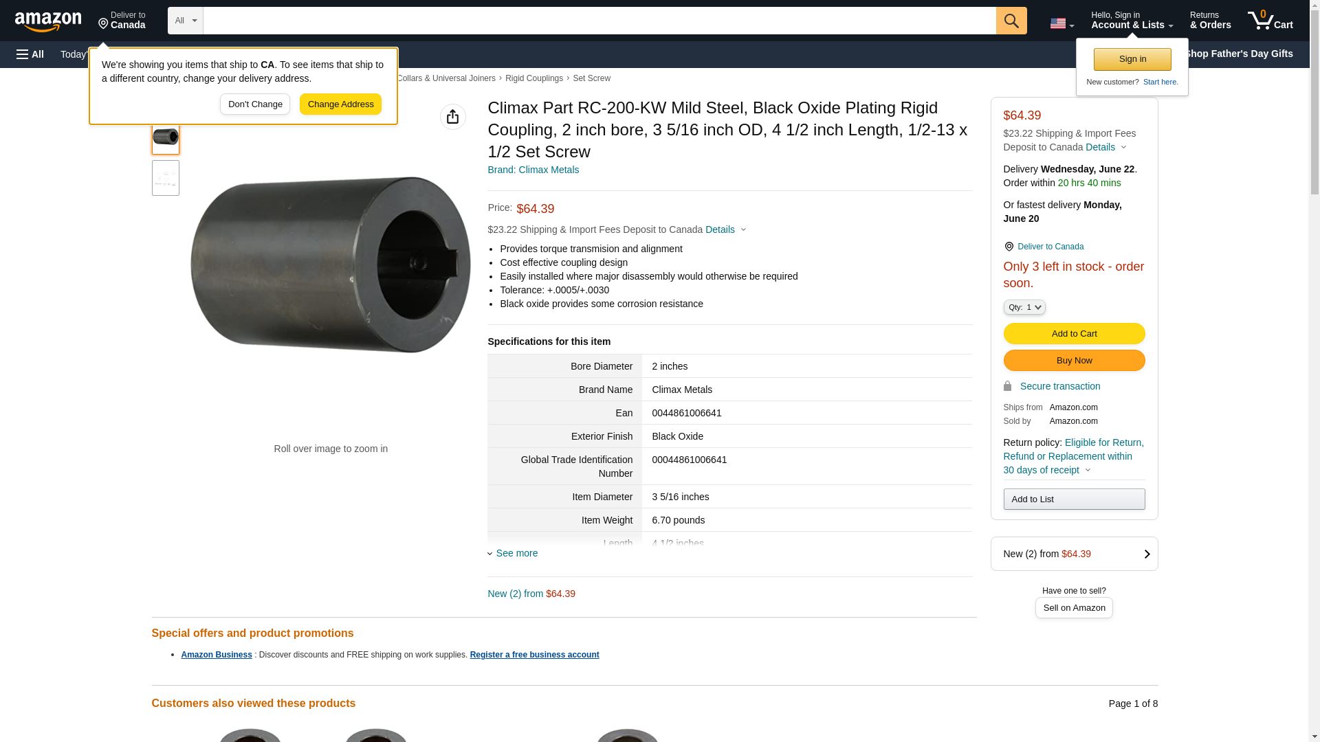 Climax Metal RC-200-KW, RC Set Screw Coupling, Steel, Black Oxide 2" (Pack of 2 pcs)
