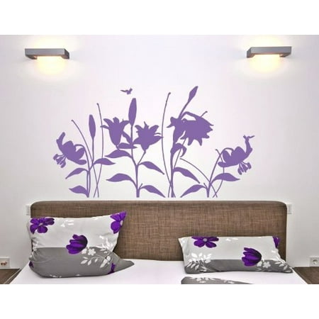Lilies Wall Decal - floral Wall Sticker, Vinyl Wall Art, Home Decor, Wall Mural - 3696 - Royal blue, 31in x 17in
