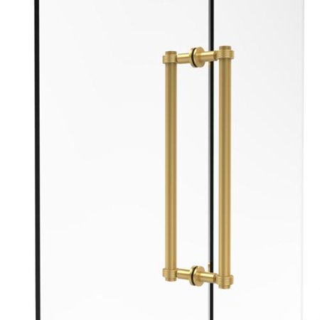 Provide rich contemporary style to your bathroom with this sleek shower door pull with its clean lines and sleek grooved detail accents. The solid brass construction ensures that this door pull is made to stand the test of time. The back-to-back design allows you to use the door pull from inside or outside the shower. <br /> <br /> <ul> <li>Comes with hardware and easy-to-use instructions for straightforward installation</li> <li>Constructed from solid brass</li> <li>Contemporary in style with attractive grooved detail accents</li> <li>Comes assembled and ready to install</li> <li>Features back-to-back design for use inside and outside of the shower</li> <li>Available in multiple finishes including satin nickel, pewter, matte black, brushed bronze, antique chrome, rubbed copper, and polished brass</li> </ul> <br /> <br />