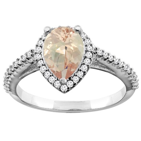 14K White Gold Natural Morganite Ring Pear 9x7mm Diamond Accents, sizes 5 - 10