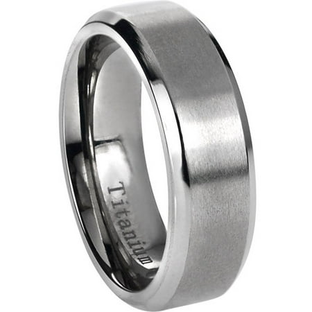 Daxx Men's Titanium Brushed Center Beveled Edge Ring:Color: silverMetal: titaniumFinish: brushed satinBand dimensions: 7mmAvailable in sizes 8-12<p>Country of Origin: Imported