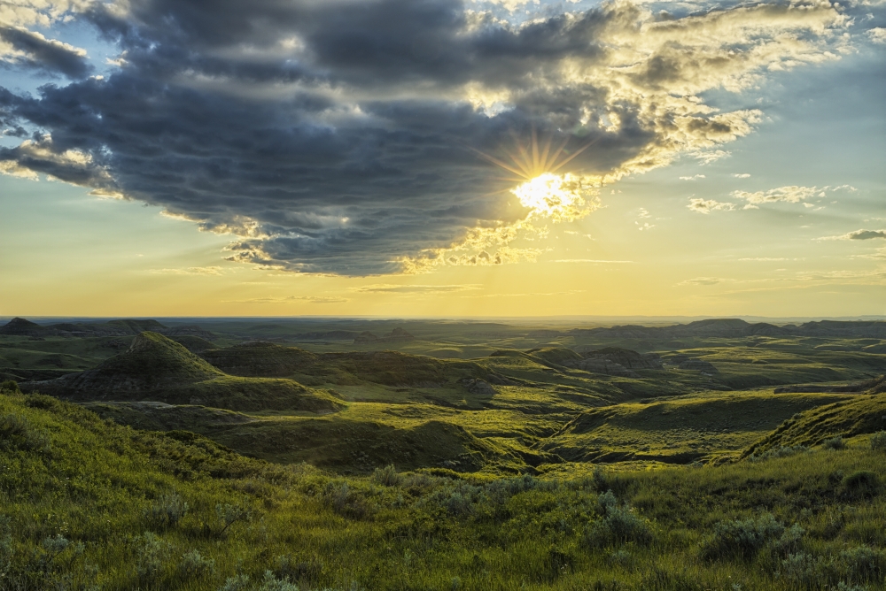 Posterazzi DPI12252437LARGE The Sun Shines Through A Cloud Over The Killdeer Badlands Grasslands National Park - Saskatc