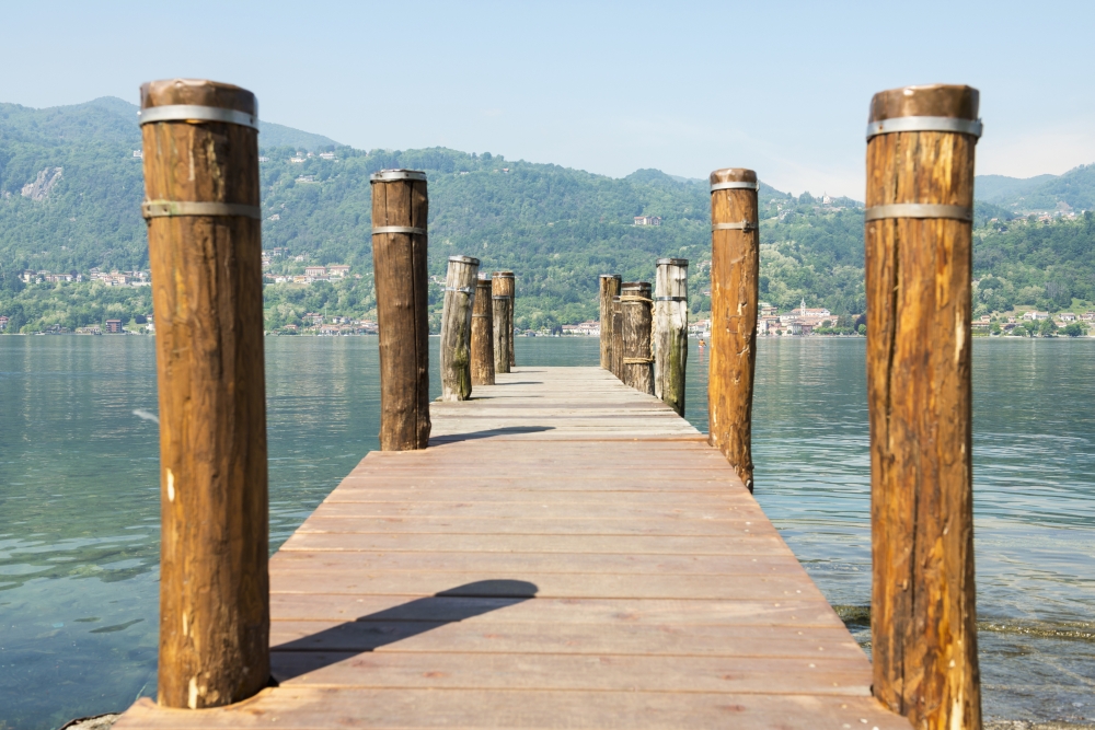 Posterazzi DPI12281346LARGE Wooden Dock & Posts on Lake Orta - Orta Piedmont Italy Poster Print - 38 x 24 in. - Large