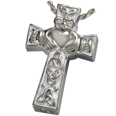 Memorial Gallery MG-3118wg Cremation Jewelry Claddagh Celtic Cross 14K Solid White Gold Pendant