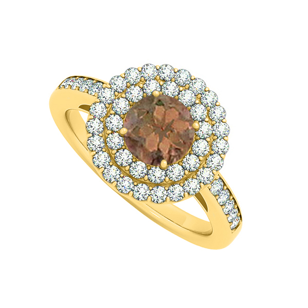 Fine Jewelry Vault UBNR83879AGVYCZSQ Smoky Quartz & CZ Halo Engagement Ring - 1.25 CT TGW , 48 Stones
