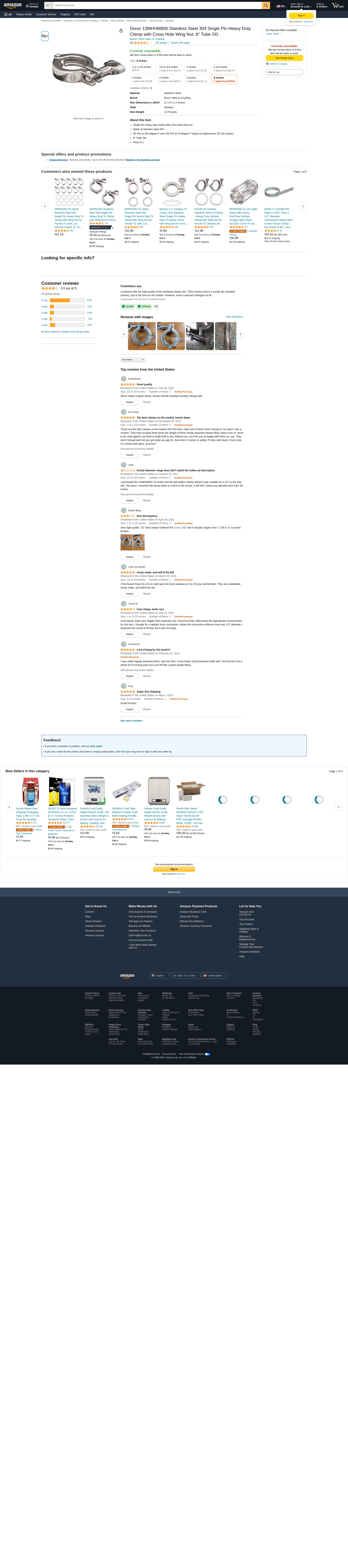 Dixon 13MHHM Single Pin Heavy Duty Clamps are constructed from 304 stainless steel and intended for use with Tri-Clamp fitting connections. These cross hole wing nut style clamps allow for quick and easy tightening without the need for tools, although Rubber Fab is proud to offer the Torque Tee Universal Sockets. These wingnut sockets can be used with a standard 1/4" drive torque wrench to guarantee proper clamping pressure is applied to your connection, ensuring a leak free seal.<br><br>Dixon offers a complete line of replacement components and accessories to compliment their clamps. While these clamps are designed for heavy duty applications, over time the wear and tear of repeated change outs will start to take a toll. So, whether it's a lost wing nut, bent rivet pin, or cross threaded bolt, we have you covered! You can even upgrade these clamps with a Spring Loaded Nut or Torque-Rite Nut for added security in high vibration or PTFE creep environments.<br><br><b>Safety Note:</b> Service pressure ratings are based on the following parameters: matching elastomer gaskets and weld ferrules properly aligned and assembled with the clamps tightened to required torques. Tests are done hydrostatically with no water hammer or shock loads. Please note the pressure ratings of the described unions may be above the recommended pipe line operating pressures.