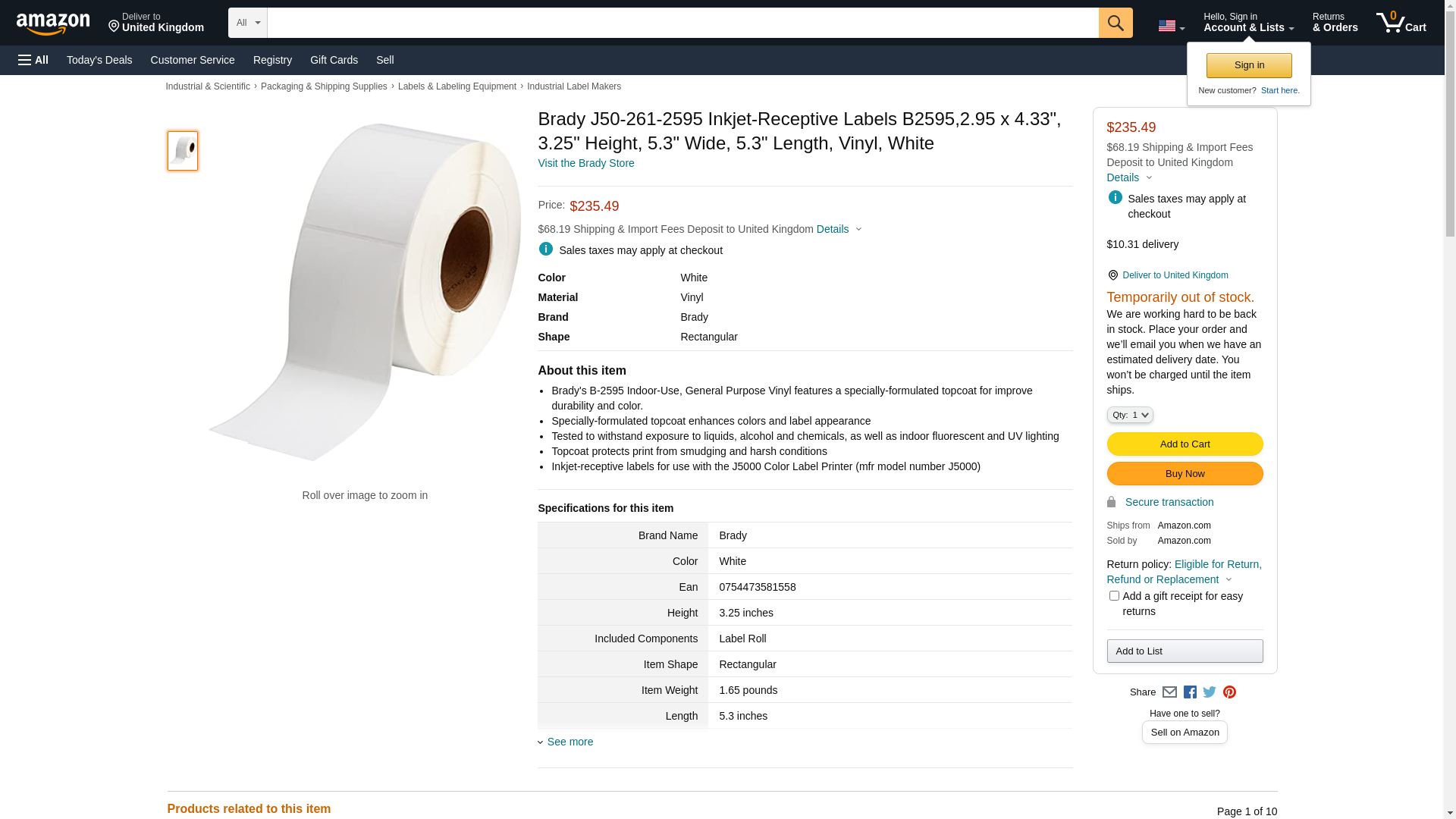 B-2595 Indoor-Use General Purpose Vinyl from Brady features a specially-formulated topcoat for improved durability and color. Specially-formulated topcoat enhances colors and label appearance Tested to withstand exposure to liquids, alcohol and chemicals, as well as indoor fluorescent and UV lighting Topcoat protects print from smudging and harsh conditions Inkjet-receptive labels for use with the BradyJet J5000 Color Label Printer (mfr model number J5000)