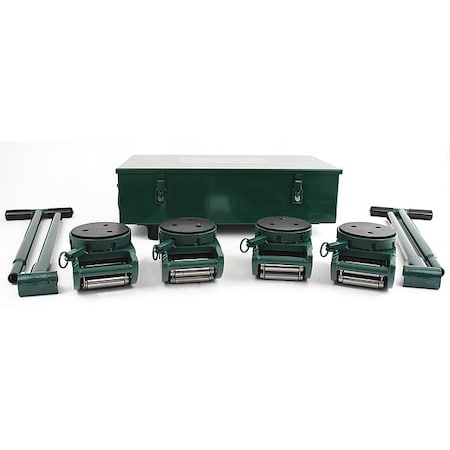 | Feature | Price For: Each Number of Rollers: 4 Item: Equipment Roller Kit Roller Type: Swivel Includes: (4) 7500 lb. Capacity Rollers and (2) 48" Handles Overall Height: 5" Overall Length: 10-1/2" Overall Width: 5-3/4" Handle Length: 48" Roller Length: 10-1/2" Load Capacity: 30, 000 lb. Country of Origin (subject to change): United States |