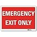 | Feature | <b>Price For:</b> Pack of 2 <b>OSHA Compliant</b>: Yes <b>UV Resistant</b>: Yes <b>Retroreflective Grade</b>: Engineer <b>Sign Shape</b>: Rectangle <b>Double-Sided</b>: No <b>Glow-in-the-Dark</b>: No <b>ANSI Compliant</b>: Yes <b>Operating Temp. Range</b>: -30 Degrees to 200 Degrees F <b>Legend</b>: Emergency Exit Only <b>Thickness</b>: 0.001" <b>Width</b>: 14" <b>Legend Style</b>: Text <b>Item</b>: Emergency Exit Sign <b>Height</b>: 10" <b>Header</b>: No Header |