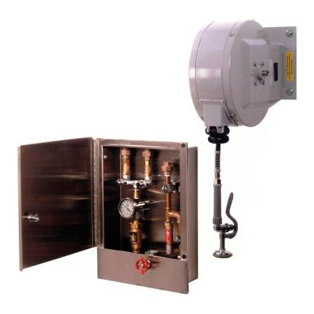 T&S Brass B-2339-LR Control Cabinet Hose Reel with Control Valve Gauge and Dual Check Valves