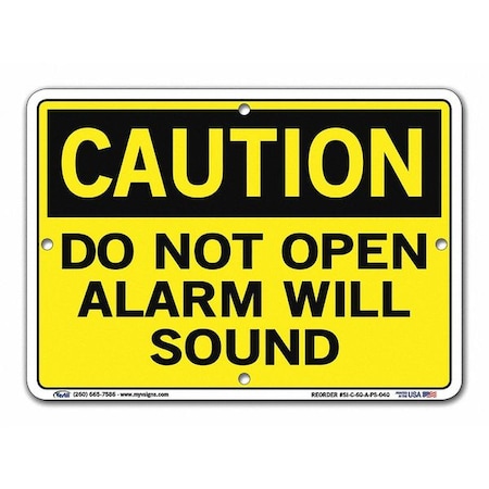 Vestil SI-C-60-A-PS-040 DO NOT OPEN ALARM WILL SOUND Caution Sign, Polystyrene, 0.040" Overall Size, 10.5" W x 7.5" H