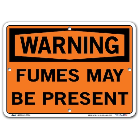 Vestil SI-W-38-A-AL-080 Fumes May BE Present Warning Sign, Aluminum, 0.080" Overall Size, 10.5" W x 7.5" H