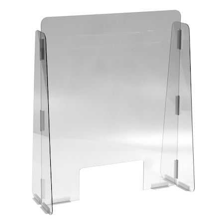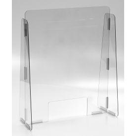 SNEEZE GUARD, CASHIER, MESSAGE, CLEAR, 8 LBS, 1/4 IN THICK, 11 X 5 IN PASS-THROUGH, 23 X 28 IN, PC