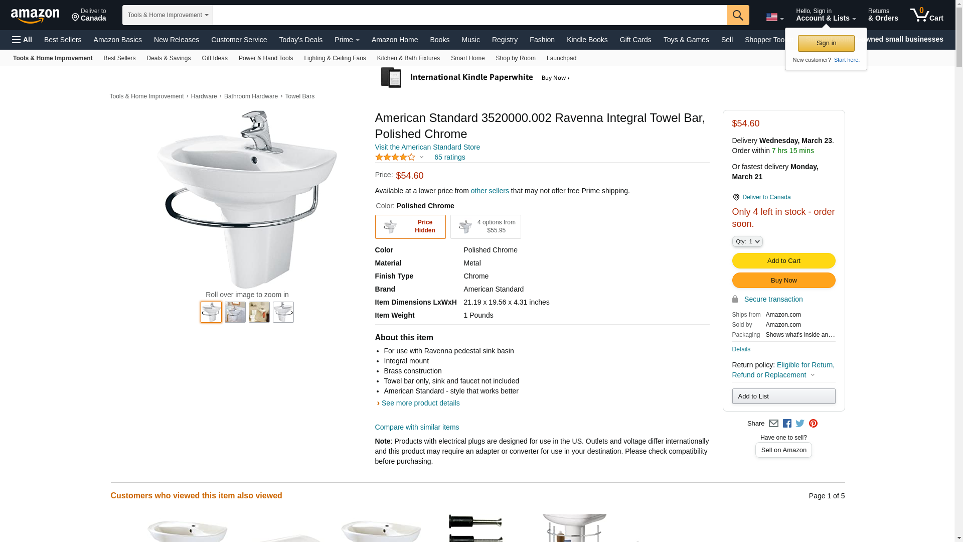 American Standard 3520000.002 Ravenna Integral Towel Bar, Polished Chrome 19.31" Length x 21.25" Width x 4.37" Height
