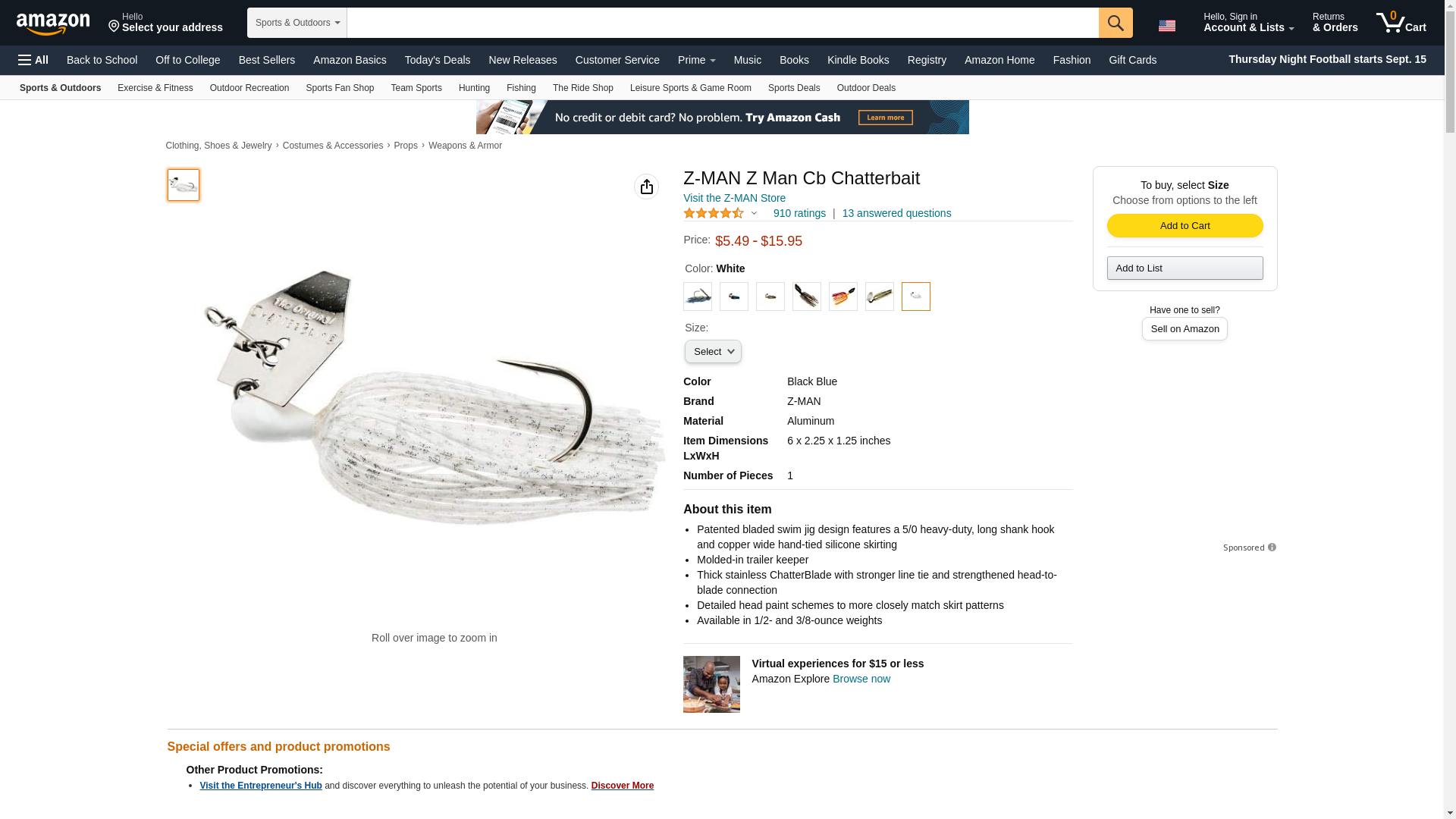 Z-man ChatterBait Elite Lures 1/2 oz Weight 5/0 Gamakatsu Hook White [FC-879020001522]
