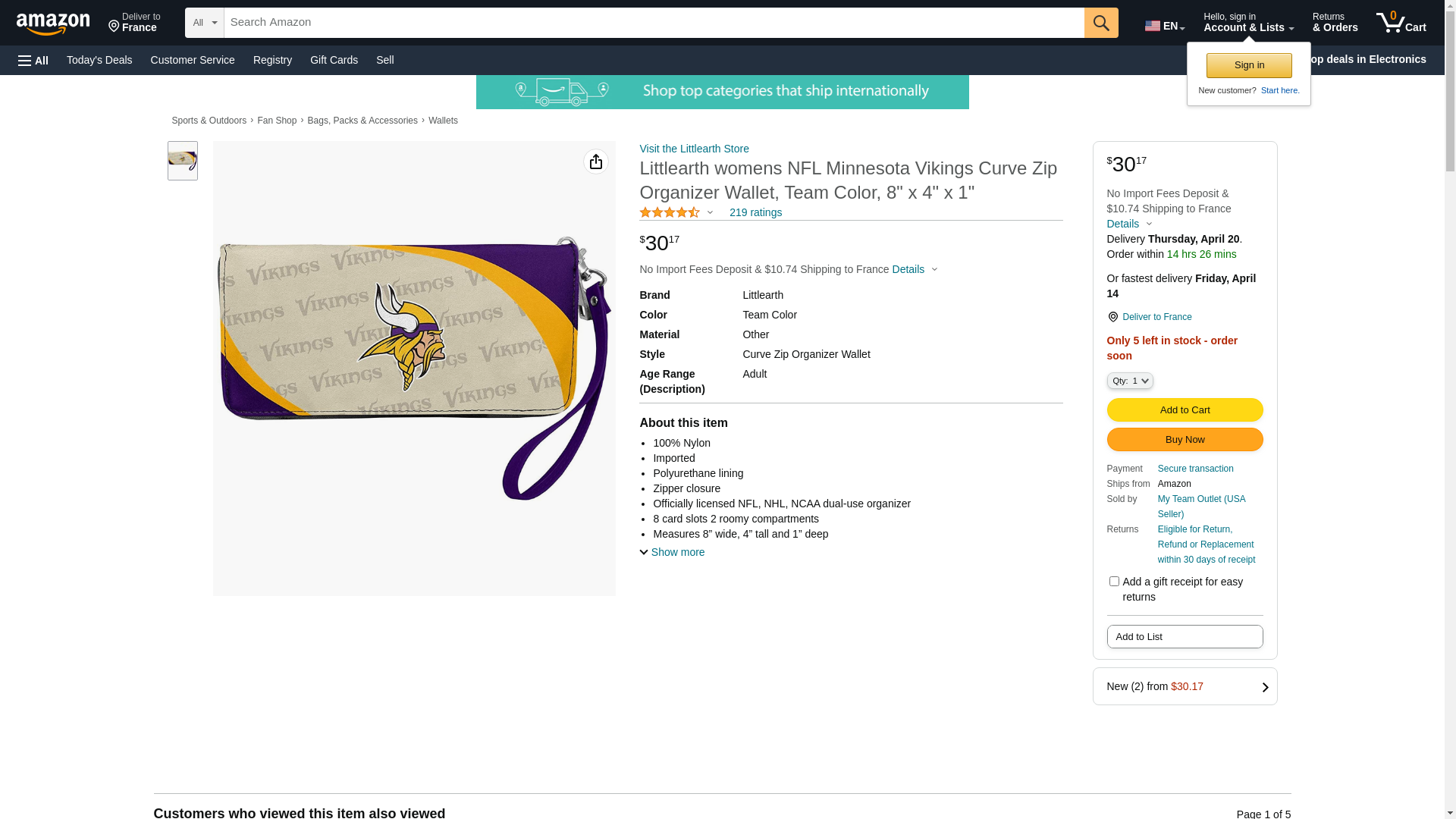Littlearth womens NFL Minnesota Vikings Curve Zip Organizer Wallet, Team Color, 8" x 4" x 1"