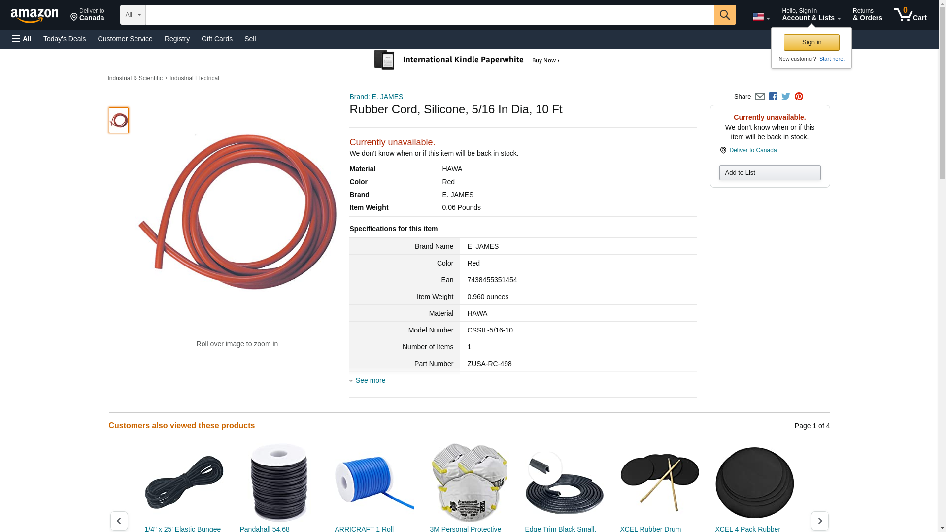 E James & Co CSSIL-5/16-10 | Rubber Cord Silicone 5/16 Inch Diameter 10 Feet | 6RTH5 | Raptor Supplies Worldwide