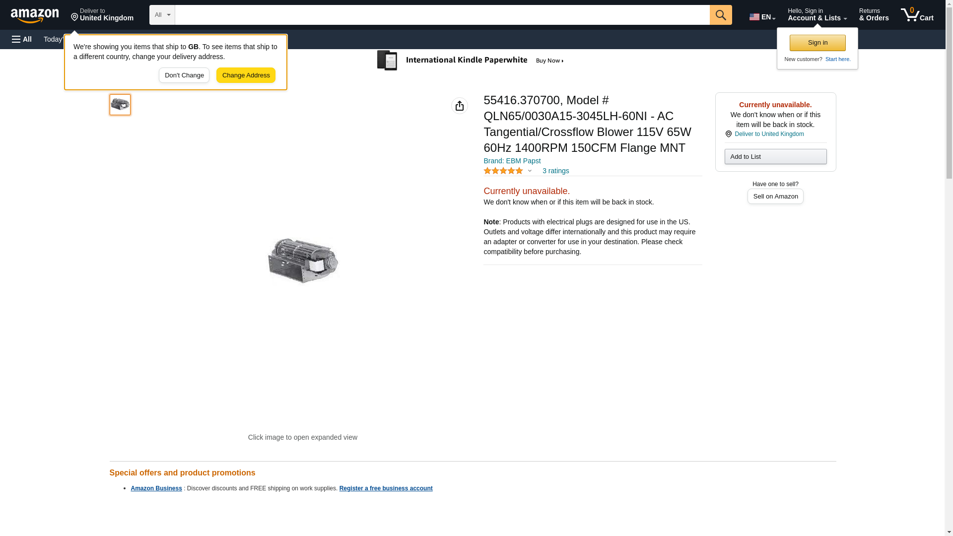55416.37070 AC Blower 115V 65W 60Hz 1400RPM 150CFM Flange Mount