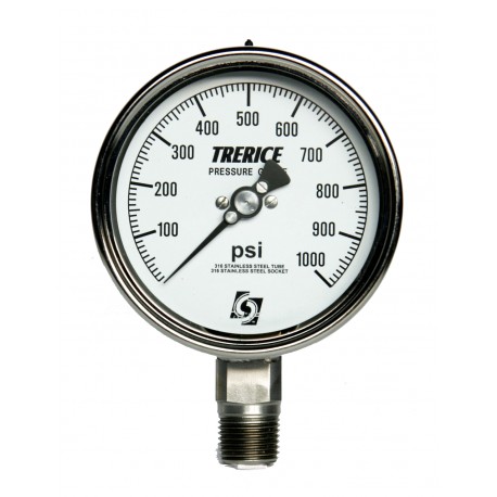 Trerice 700LFSS4004LA2000 Industrial Gauge, 4" dial, 0 to 2000 psi, 1/2" NPT Stainless Steel Connection, Lower Mount, Liquid Filled