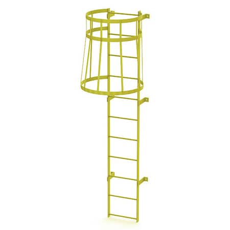 Tri-Arc WLFC1111-Y 11-Rung Standard Fixed Steel Ladder with Cage, Safety Yellow Powder Coated Finish