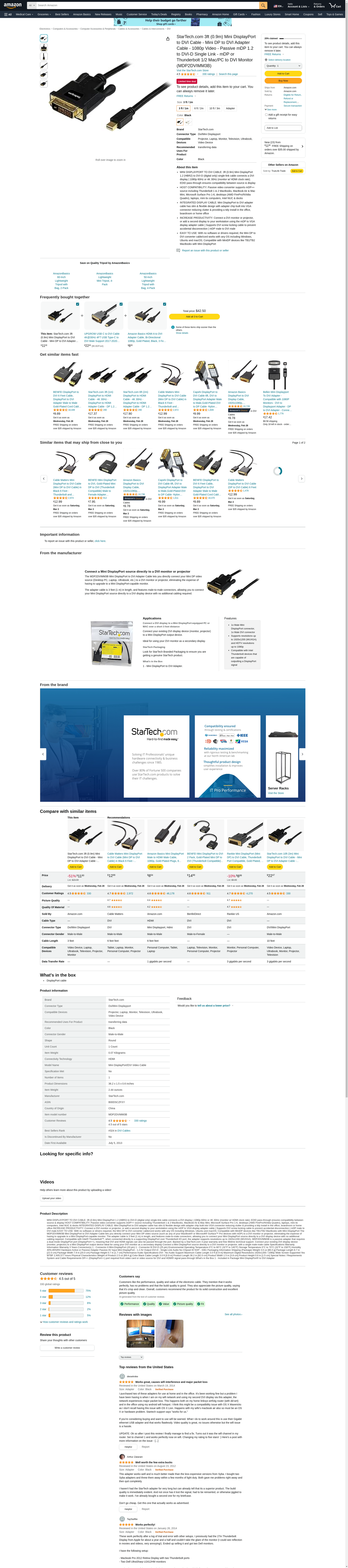 Buy StarTech.com 3ft (0.9m) Mini DisplayPort to DVI Cable - Mini DP to DVI Adapter Cable - 1080p Video - Passive mDP 1.2 to DVI-D Single Link - mDP or Thunderbolt 1/2 Mac/PC to DVI Monitor (MDP2DVIMM3B): DVI - Amazon.com ? FREE DELIVERY possible on eligible purchases