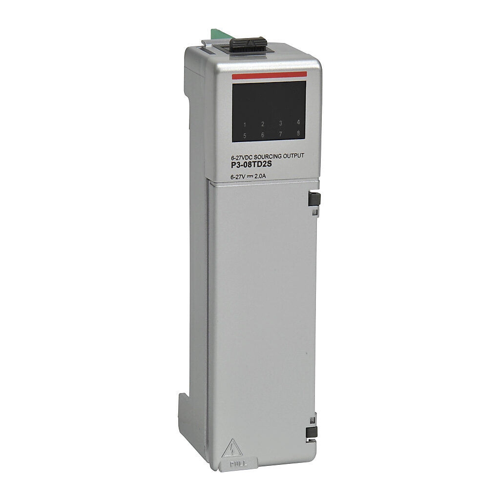 P3-08TD2S - Productivity3000 discrete output module, 8-point, 6-24 VDC, sourcing, 4 isolated common(s), 2 point(s) per common, 2A/point, 4A/common....