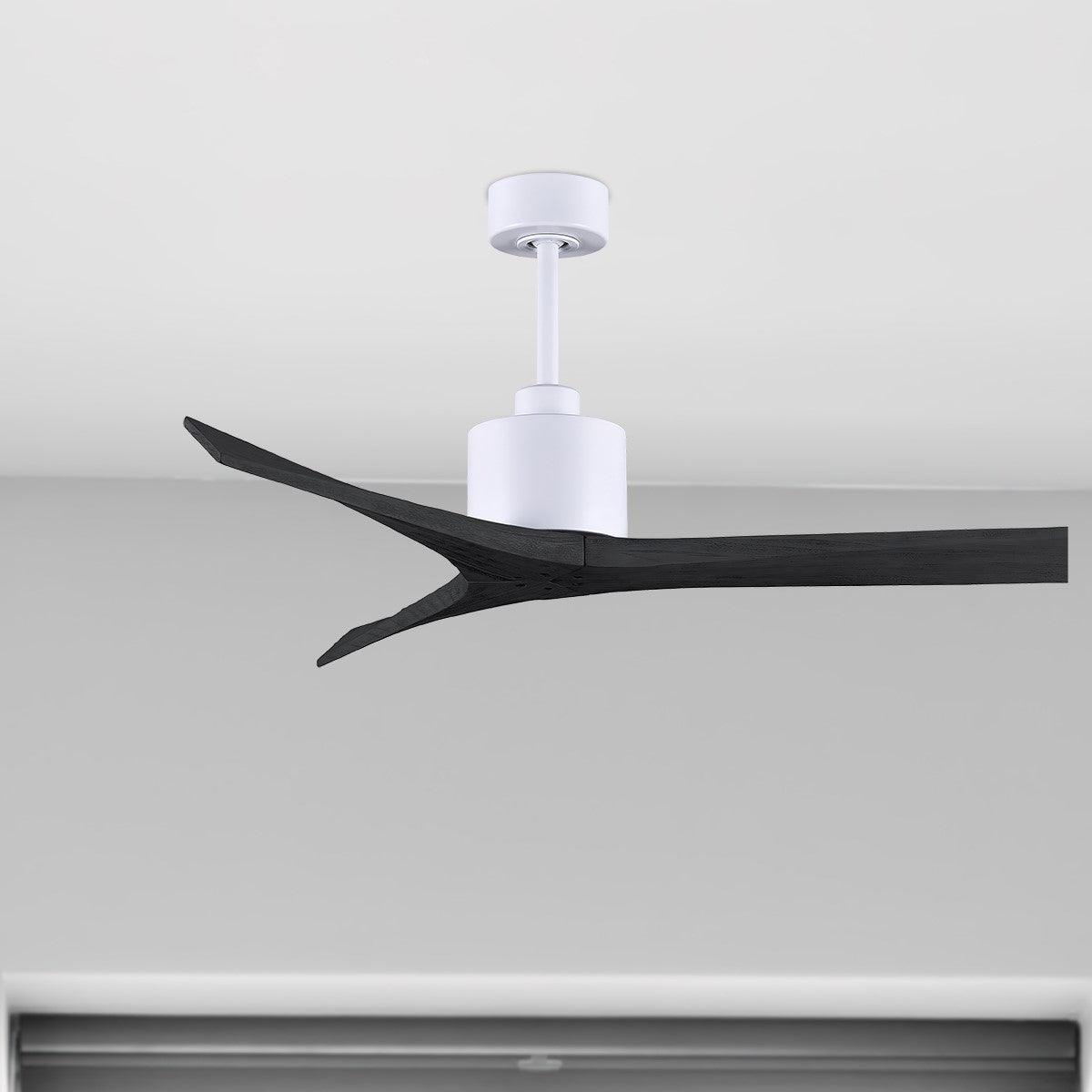 Matthews MW-MWH-WA-52 Mollywood Indoor/Outdoor Damp Rated 52" Ceiling Fan with Remote & Wall Control, 3 Walnut Tone Solid Wood Blades, Matte White
