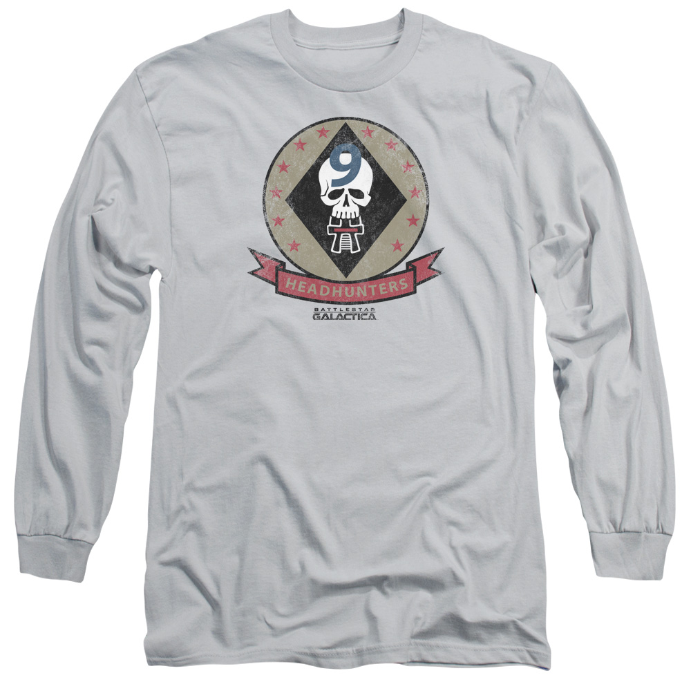 Trevco BSG283-AL-2 BSG & Headhunters Badge Long Sleeve Cotton Adult 18-1 T-Shirt, Silver - Medium