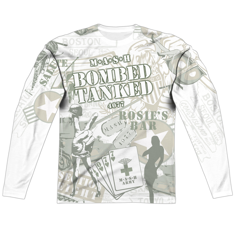 Trevco TCF226-ALPP-6 Mash & Bombed Tank Adult Polyster Crew Neck Long Sleeve T-Shirt, White - 3X