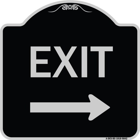 Designer Series-Exit With Right Arrow, Black & Silver Heavy-Gauge Aluminum