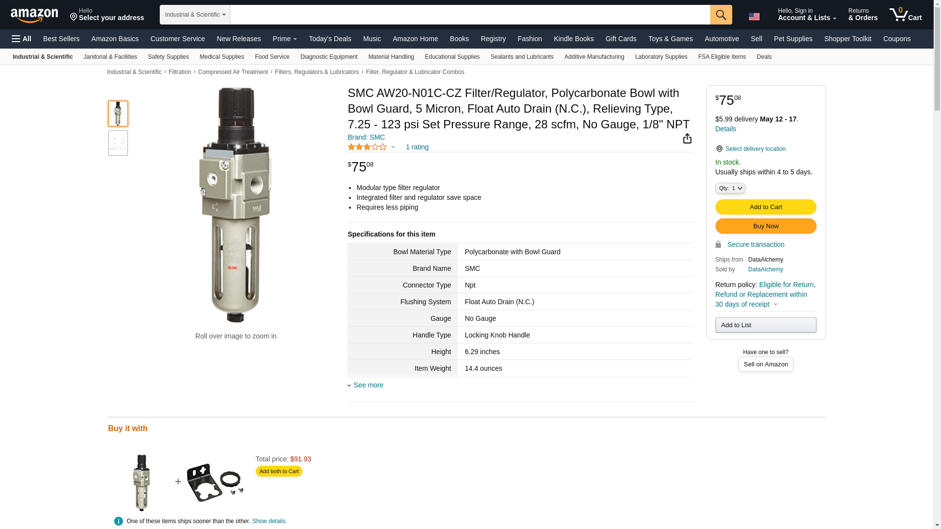 | smcpneumatics.com | AW20-N01C-CZ | 1 | 22 | 1 | 1 @ $43.40 |