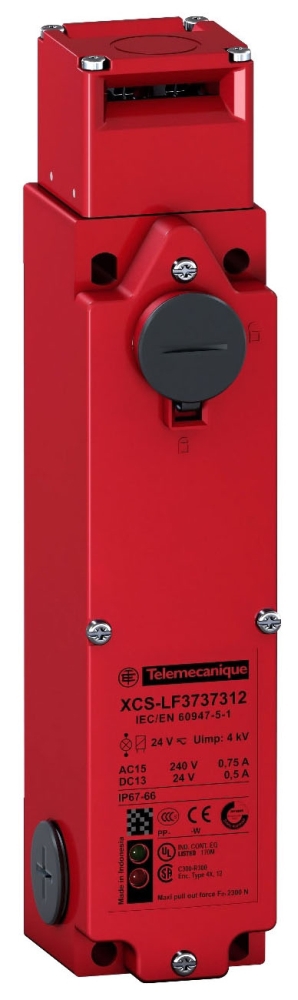 | Feature | Keyed safety interlock switch with solenoid unlock on energize and metal enclosure |
