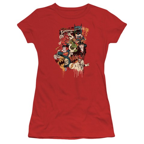 Trevco Dc-Dripping Characters - Short Sleeve Junior Sheer Tee - Red, Large