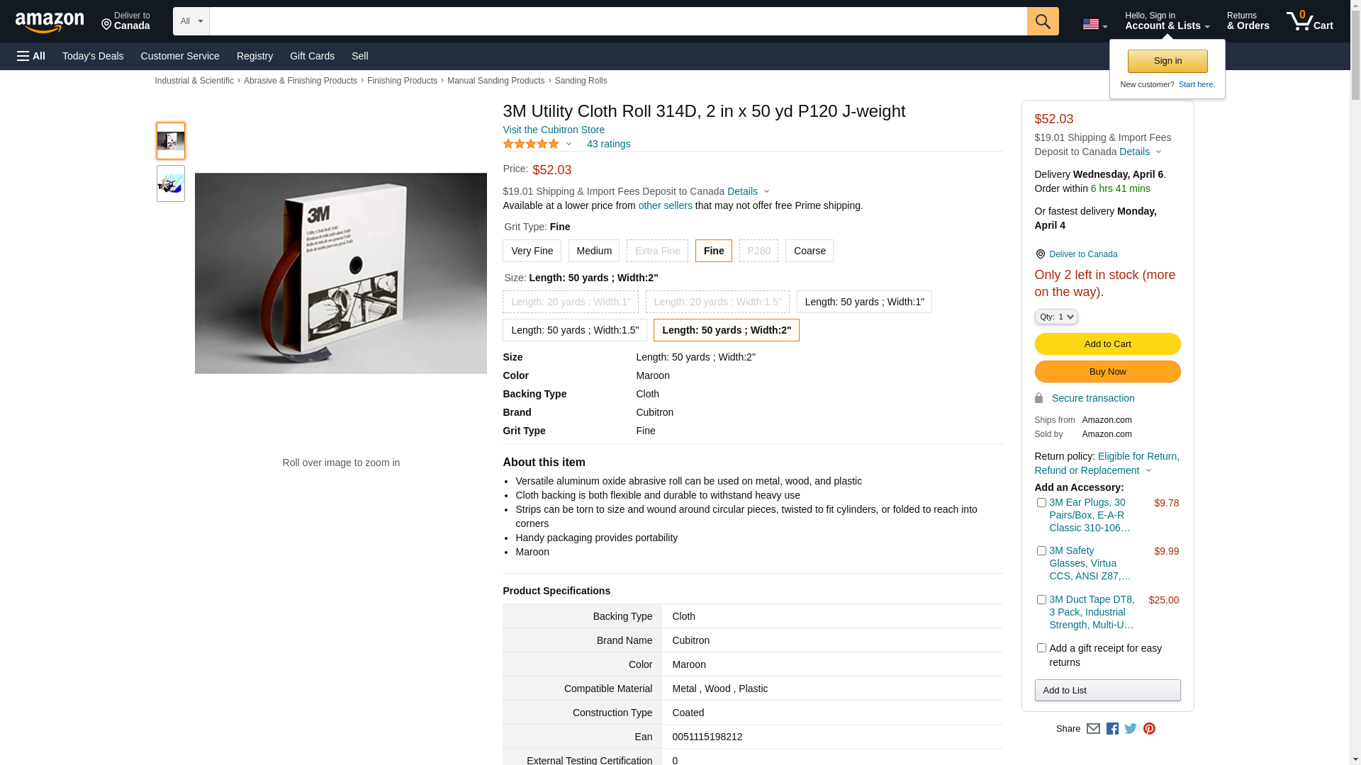 3M Utility Cloth Roll 314D, Aluminum Oxide, 2" Width x 50 yds Length, P120 Grit, Maroon (Pack of 1)