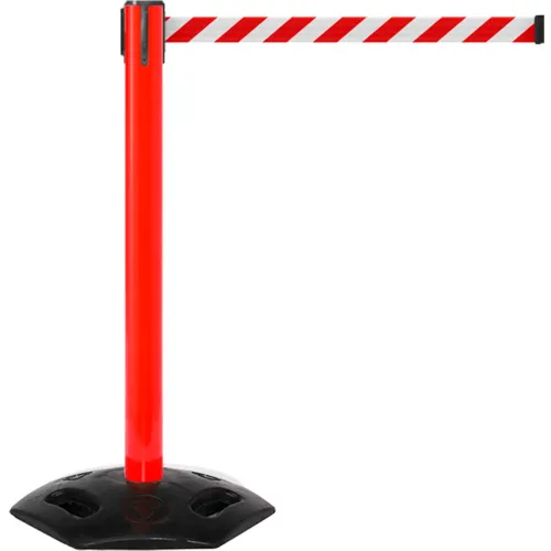 WeatherMaster 300 Retractable Belt Barrier, 40" Red Post, 16' Red/White Belt