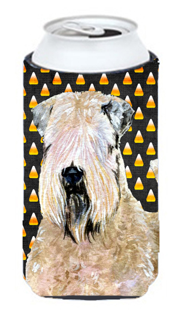 Caroline's Treasures SS4281TBC Wheaten Terrier Soft Coated Candy Corn Halloween Portrait Tall Boy Hugger Can Cooler Sleeve Hugger Machine Washable Drink Sleeve Hugger Collapsible Insulator Beverage In