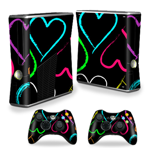 MightySkins XBOX360S-Hearts Skin Decal Wrap Cover for Xbox 360 S Slim Plus 2 Controllers - Hearts