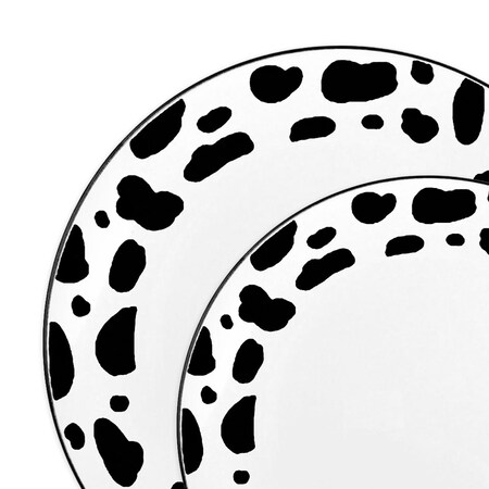 White w/Black Dalmatian Spots Round Plastic Dinnerware Set,120 Dinner Plates,120 Salad Plates,240PK
