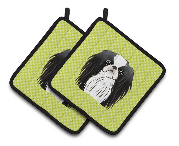 Carolines Treasures BB1292PTHD Checkerboard Lime Green Japanese Chin Pair of Pot Holders, 7.5 x 3 x 7.5 in.