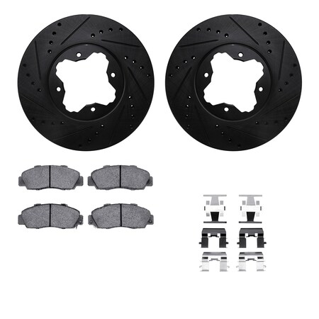8512-59023, Rotors-Drilled and Slotted-Black w/ 5000 Advanced Brake Pads incl. Hardware, Zinc Coated