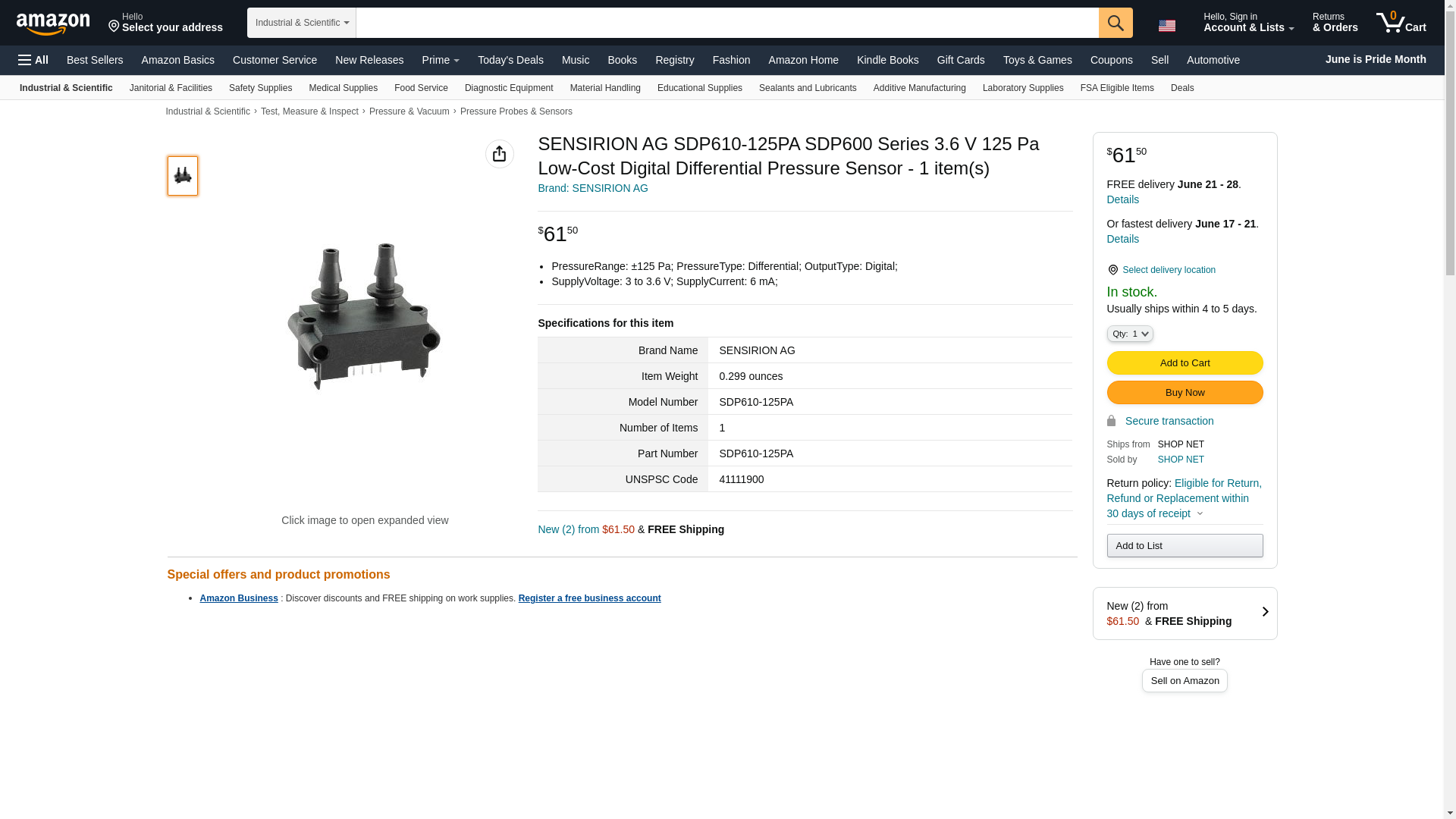 SENSIRION AG SDP610-125PA SDP600 Series 3.6 V 125 Pa Low-Cost Digital Differential Pressure Sensor - 1 item(s)
