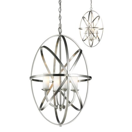 | Feature | Orbiting metal bands circle the contemporary inner chandelier |