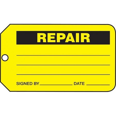 Accuform MMT336PTP Production Control Tag, Legend"Repair", 5.75" Length x 3.25" Width x 0.015" Thickness, RP-Plastic, Black on Yellow (Pack of 25)
