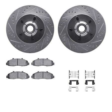 Dynamic Friction Company Front Brake Rotors-Drilled and Slotted-Silver with Ultimate Duty Performance Brake Pads includes Hardware 7412-54056