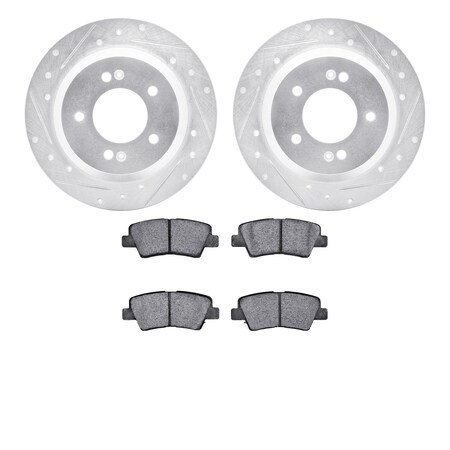 Dynamic Friction Company Rear Brake Rotors Drilled and Slotted Silver with 5000 Advanced Brake Pads - 7502-03100