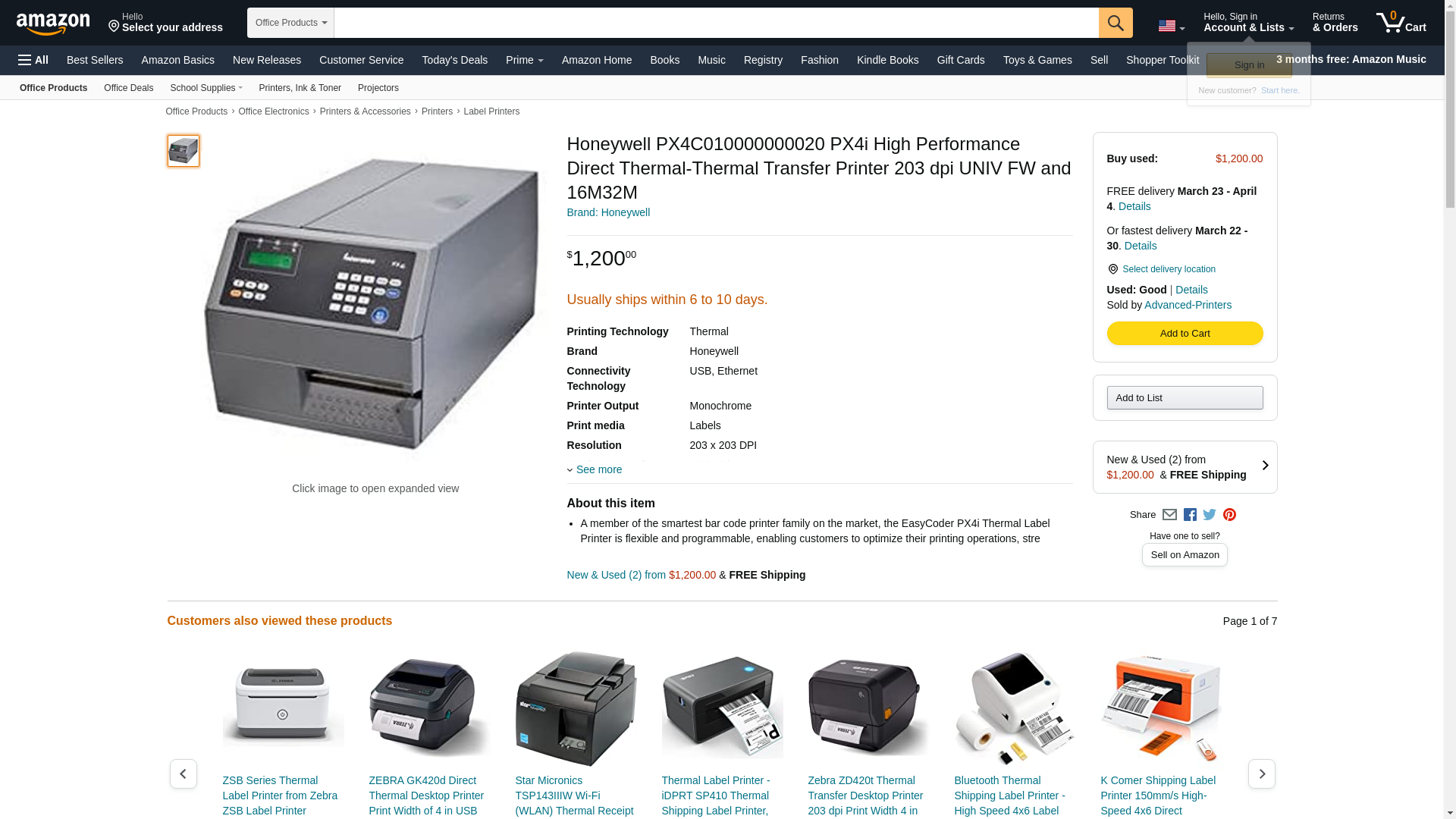 Honeywell PX4C010000000020 PX4i High Performance Direct Thermal-Thermal Transfer Printer 203 dpi UNIV FW and 16M32M