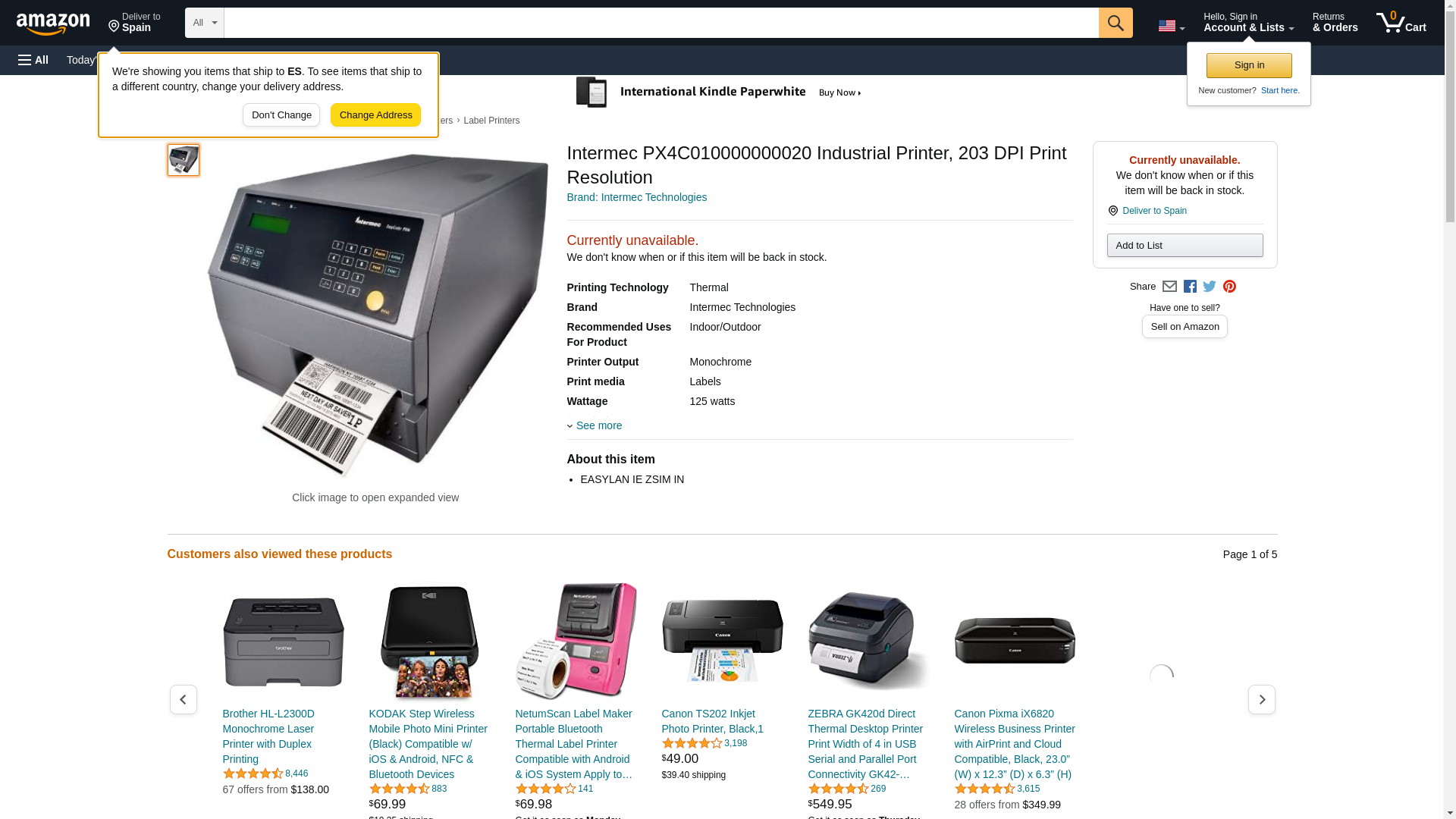 Intermec PX4C010000000020 Industrial Printer, 203 DPI Print Resolution