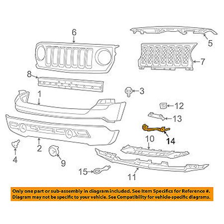 Jeep CHRYSLER OEM Patriot Front Bumper Grille Grill-Tow Hook Right 5115268AD<li></li>Brand: Mopar<li></li>Part Number: 5115268AD<li></li>Item Condition: New<li></li>Item Description: Tow Hook<li></li>Manufacturer Brand Description: Tow Hook-Ref# 14 on Diagram Only<li></li>Position: Right<li></li>Ite