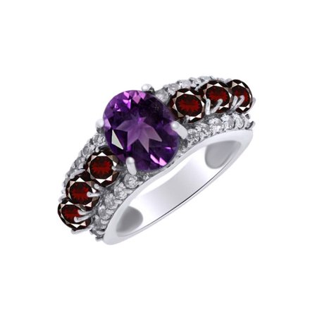 <ul> <li>Metal Type : 14k White Gold Over Sterling Silver GUARANTEED, Authenticated with a 925 Stamp</li> <li>Amethyst & Garnet With Clarity VVS1-VVS2</li> <li>Stone Shape : Oval-Shape & Round-Shape</li> <li>Stone Setting Type : prongs & Total Carat Weight : 1.47 Cttw</li> <li>Stone Creation Method : Simulated</li> </ul>